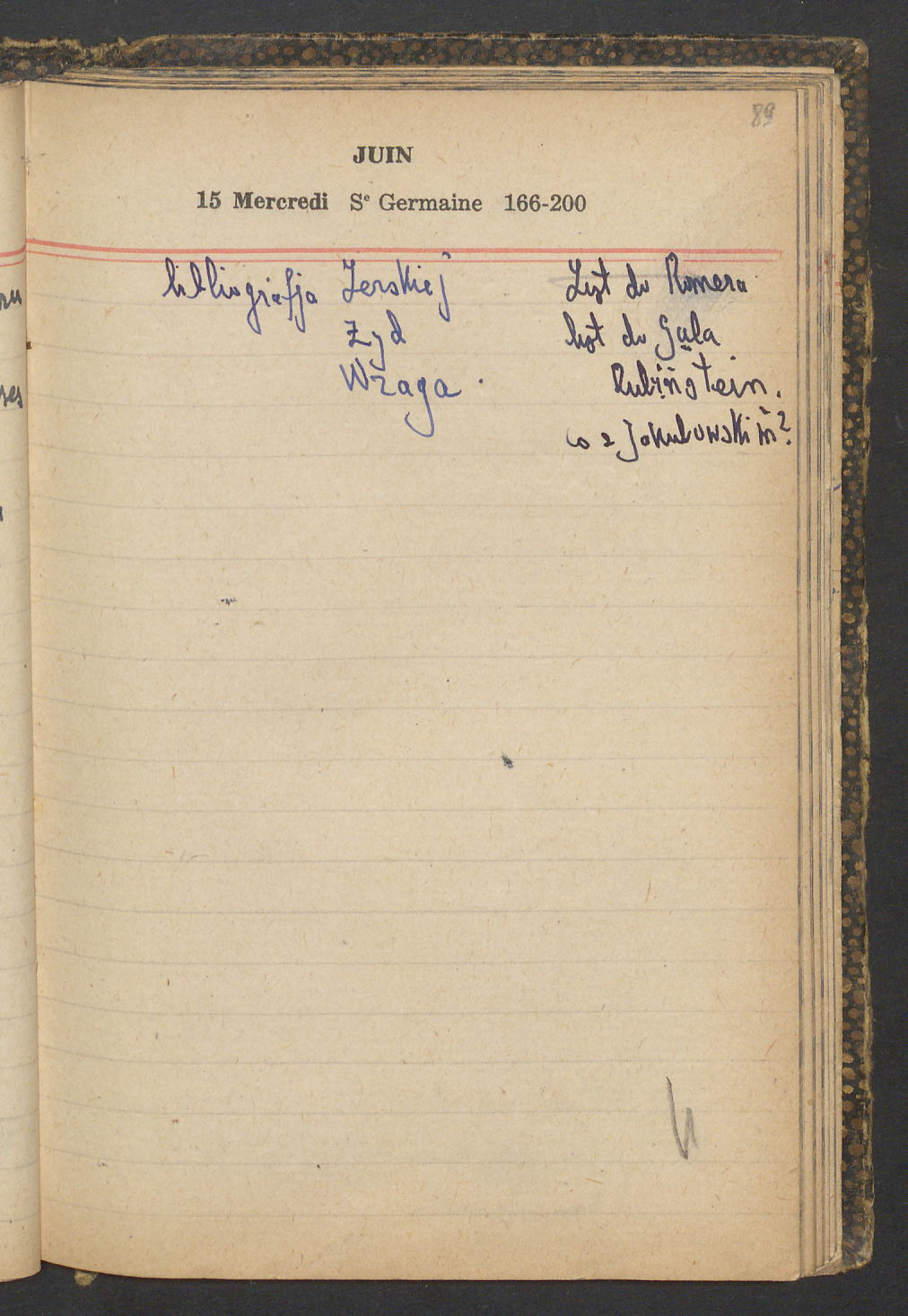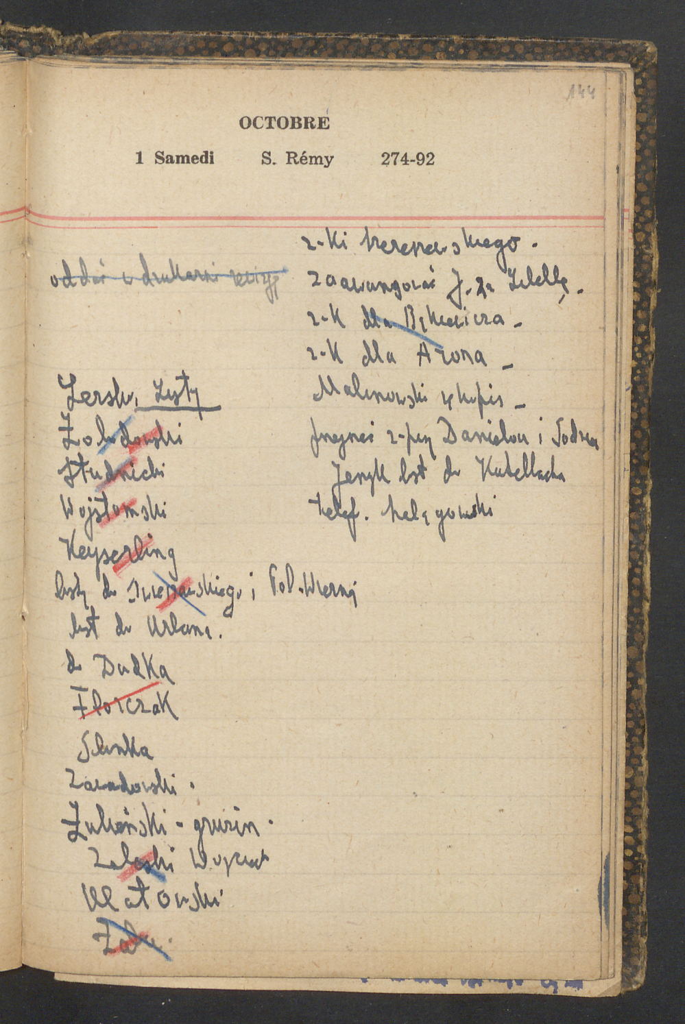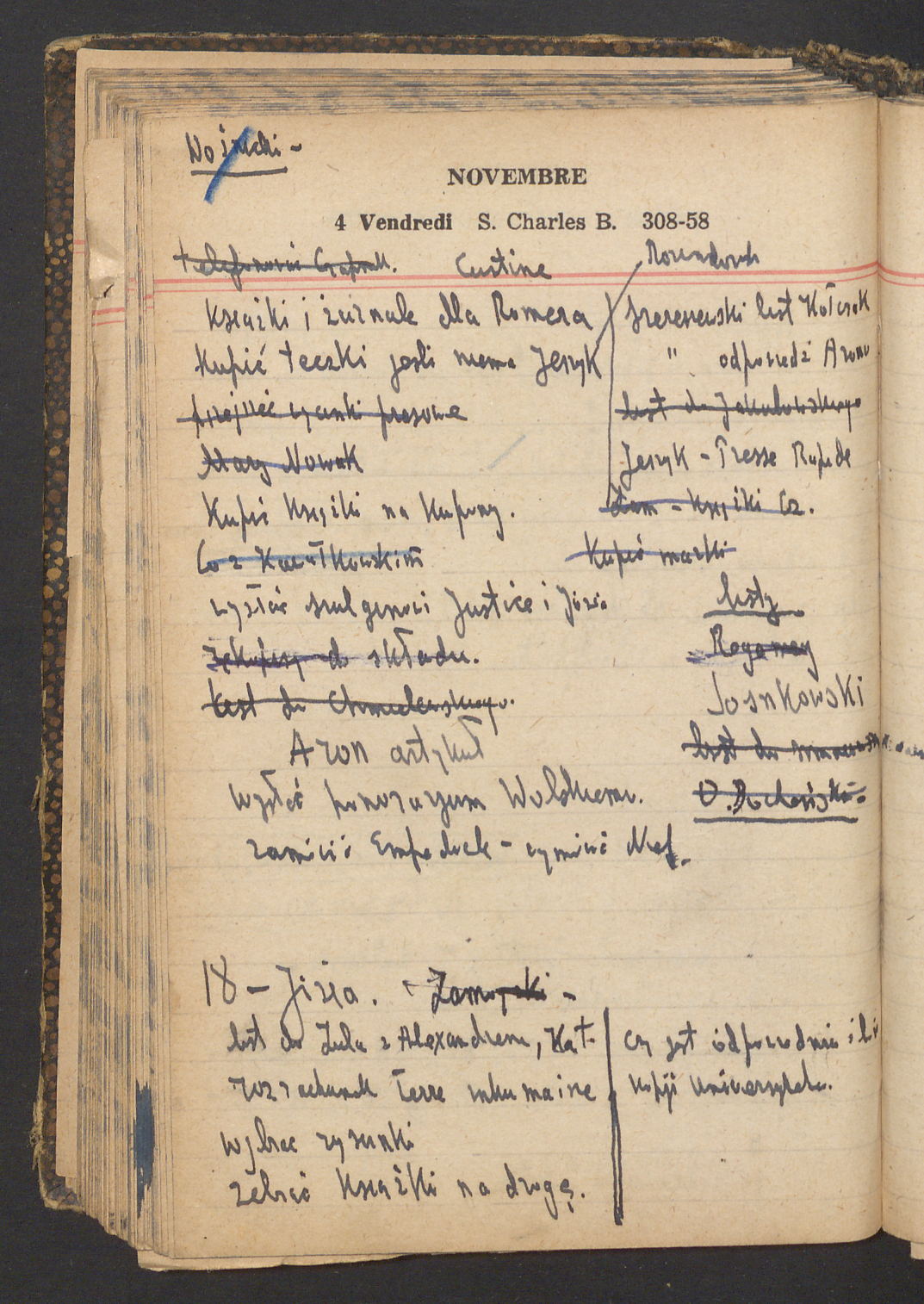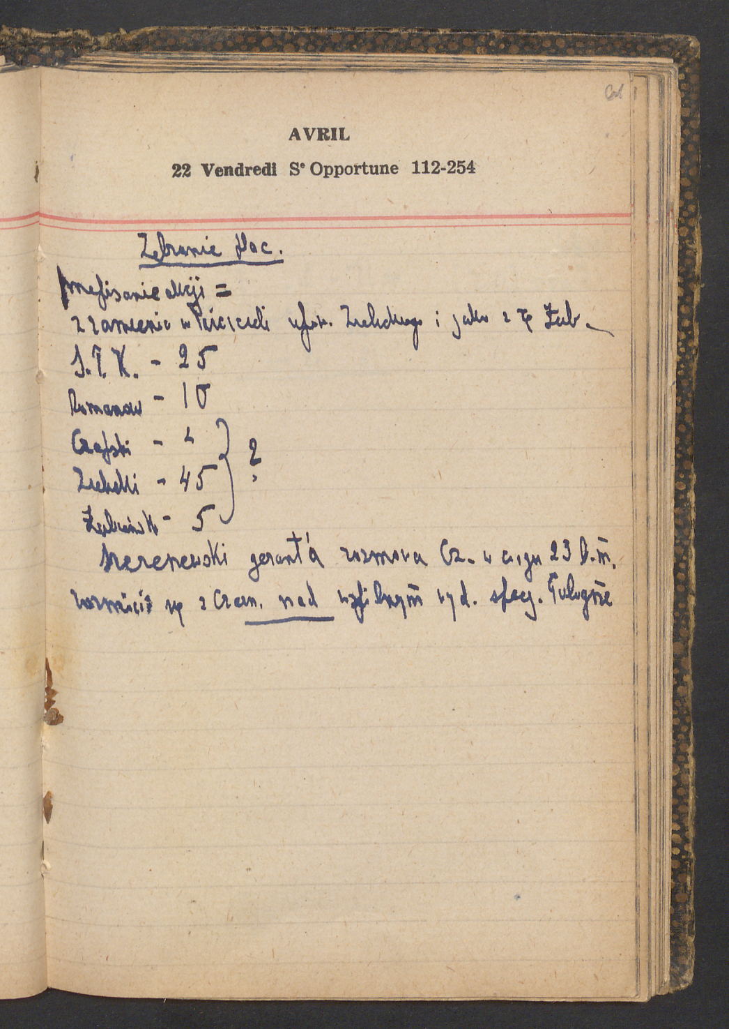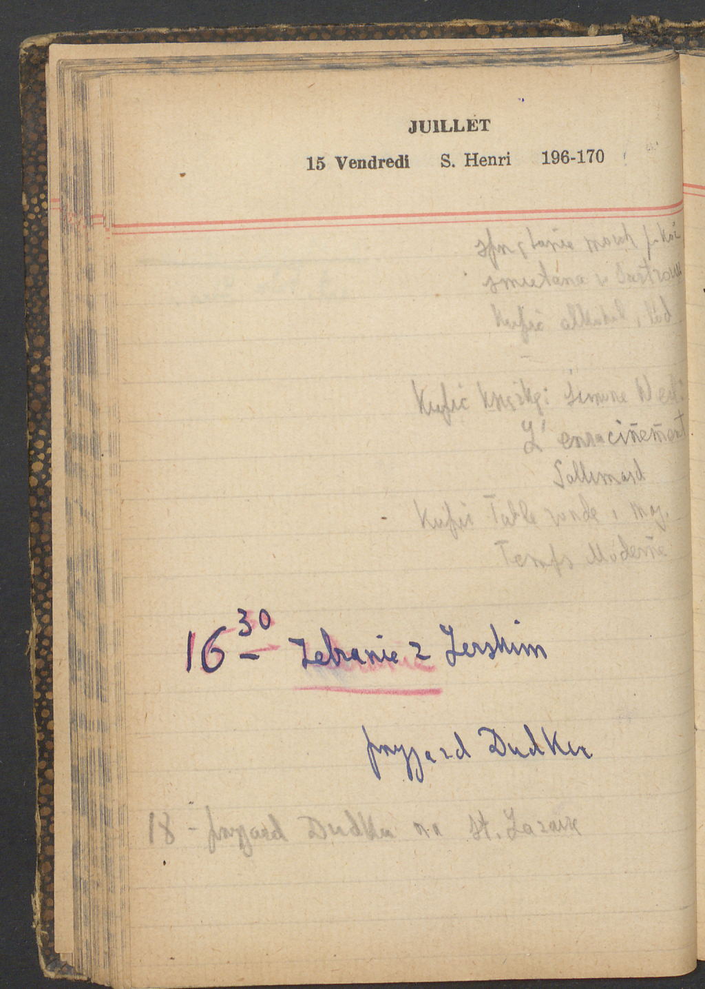 15 – Kawałkowski proponuję założ. org. franc. pol. pochodzenia oraz założenie za pien. fr. pisma codz. 2 języcznego. Mamy szczegółowo przedyskutować przed jego wyjazdem 4 IV do Londynu.