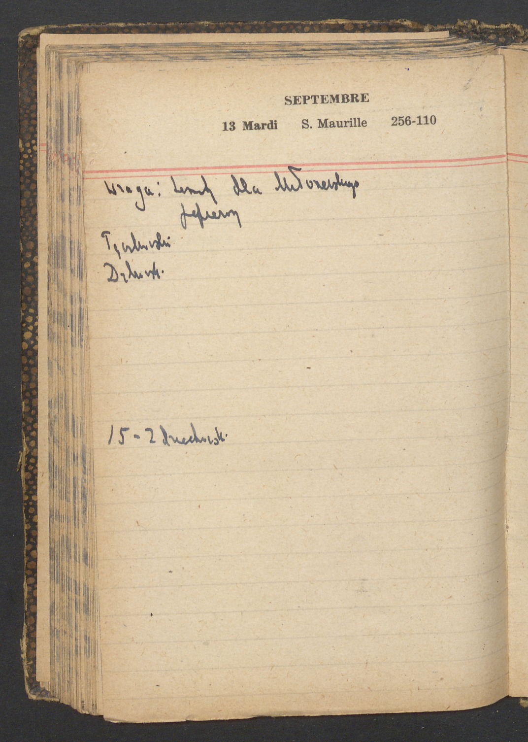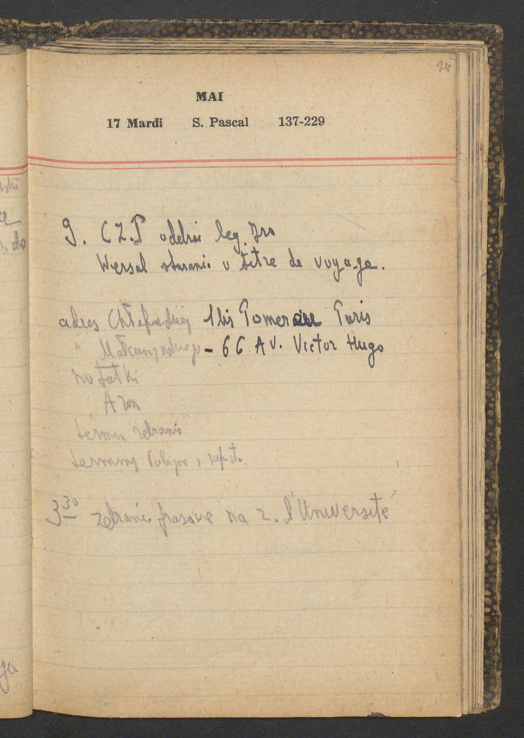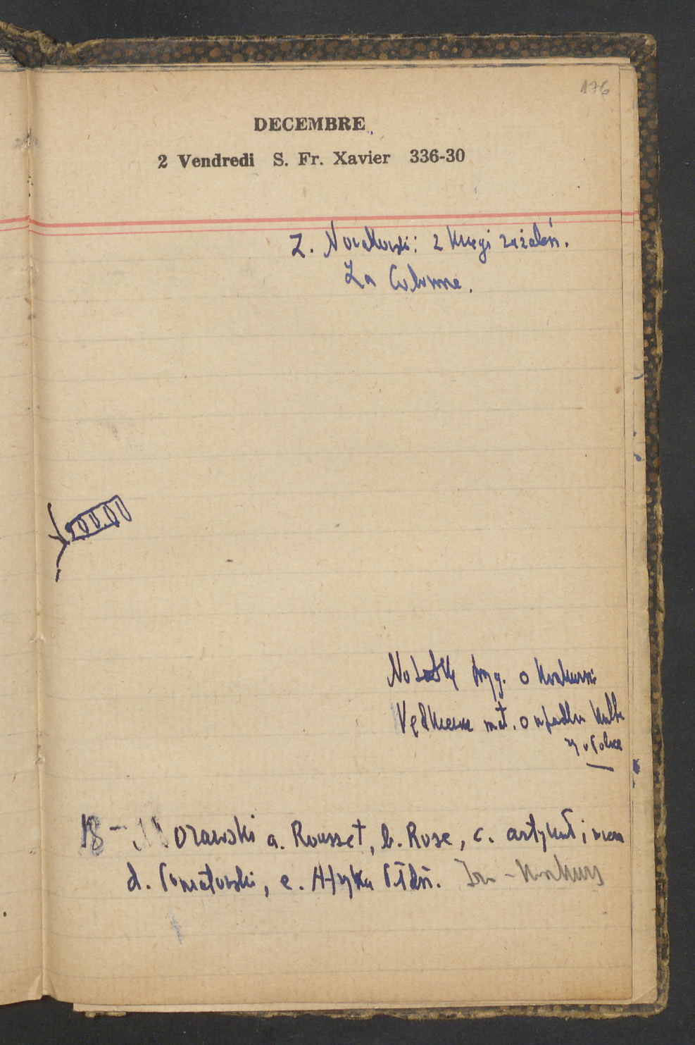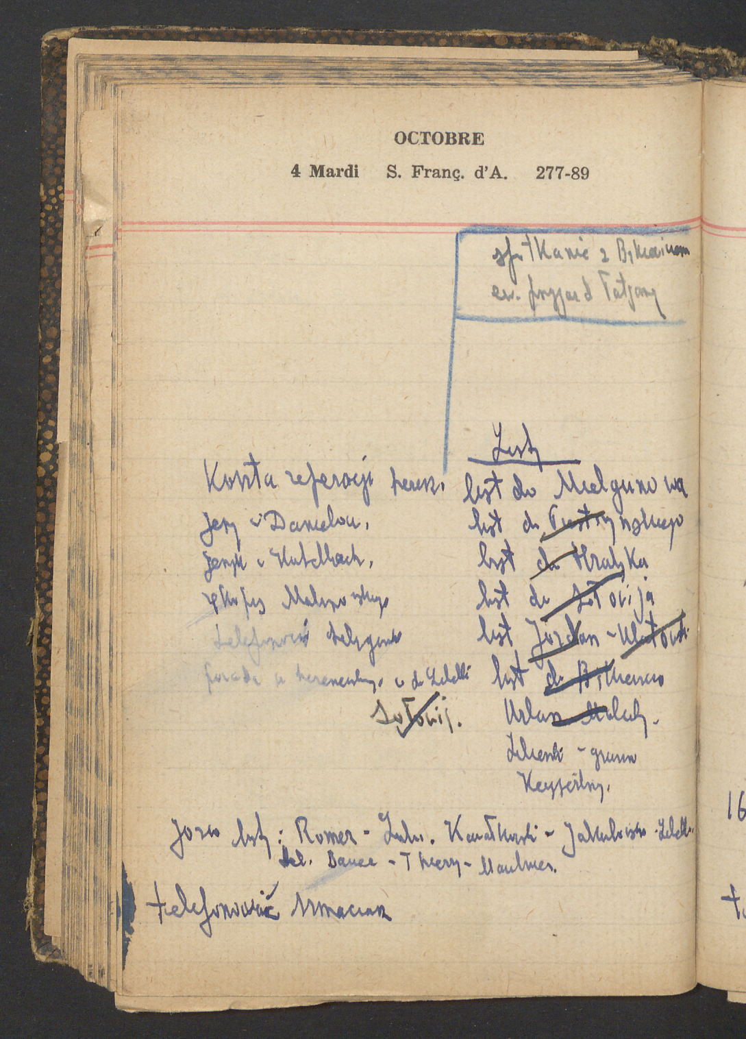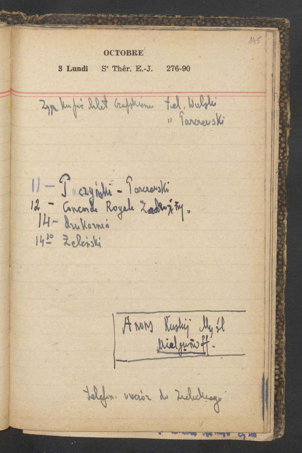 15 – Kawałkowski proponuję założ. org. franc. pol. pochodzenia oraz założenie za pien. fr. pisma codz. 2 języcznego. Mamy szczegółowo przedyskutować przed jego wyjazdem 4 IV do Londynu.