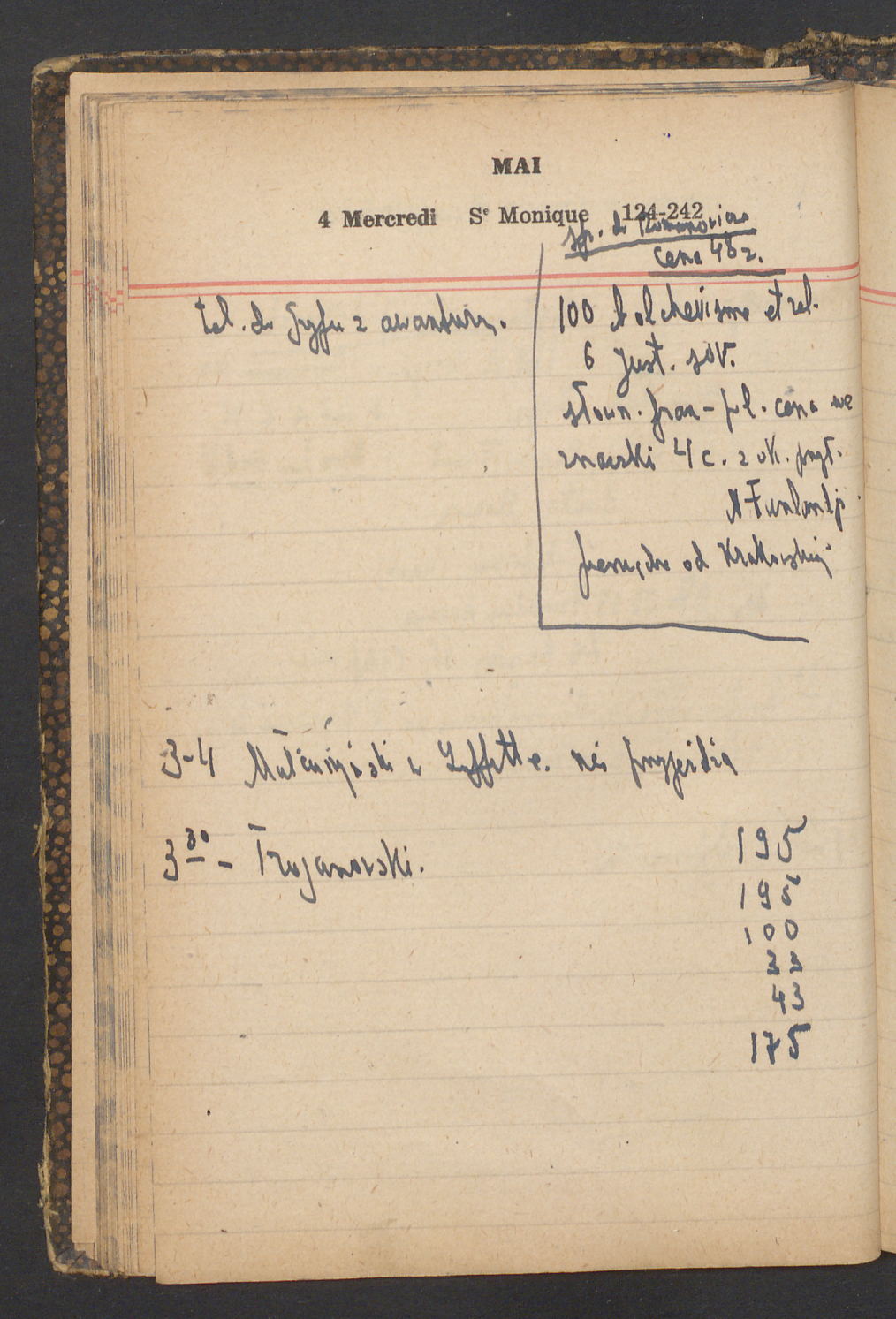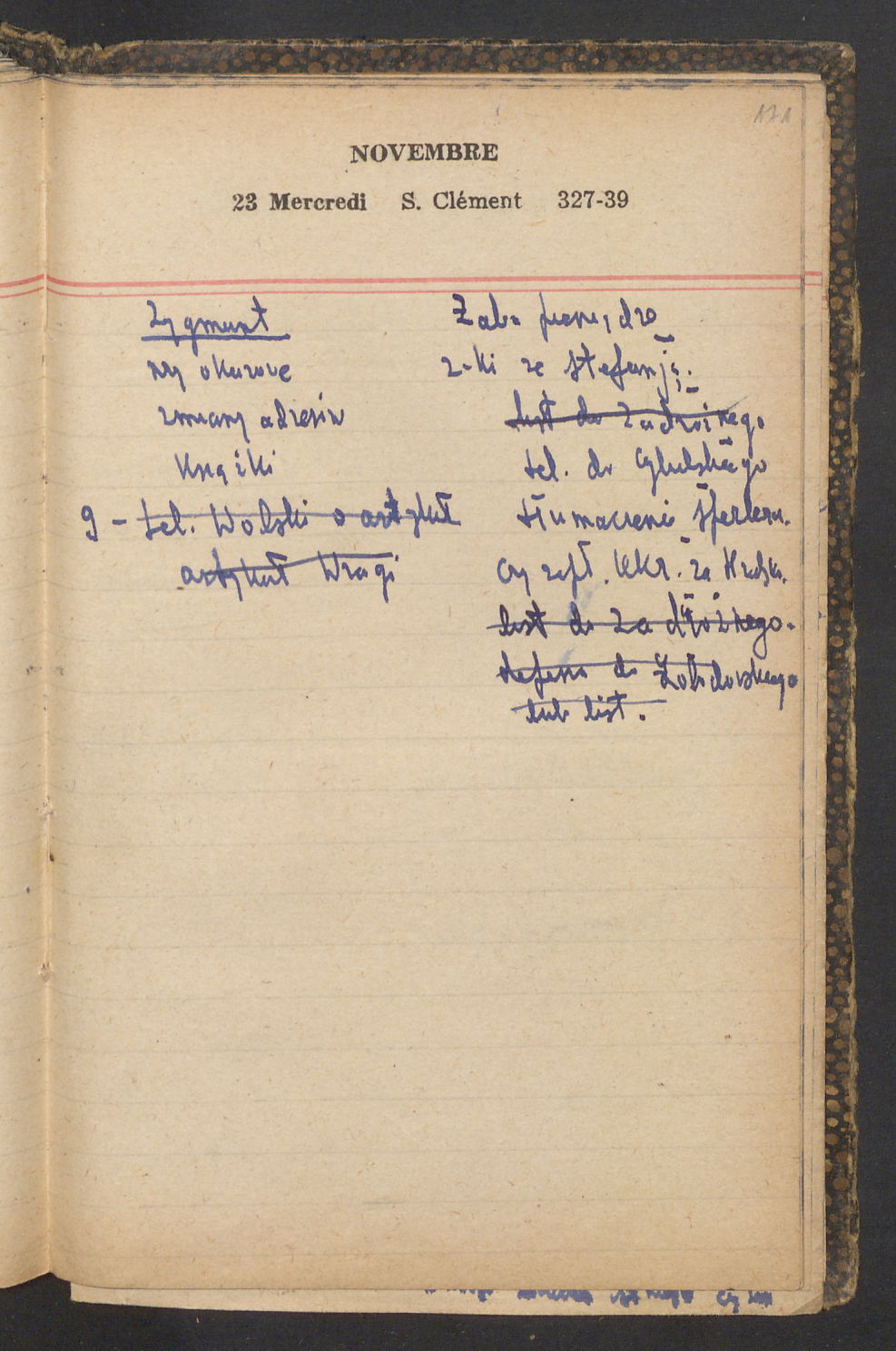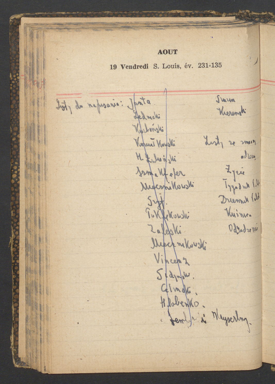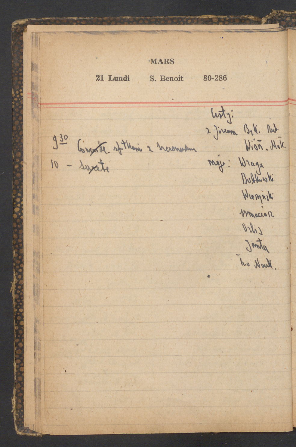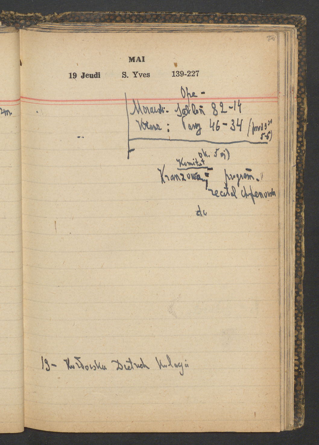15 – Kawałkowski proponuję założ. org. franc. pol. pochodzenia oraz założenie za pien. fr. pisma codz. 2 języcznego. Mamy szczegółowo przedyskutować przed jego wyjazdem 4 IV do Londynu.