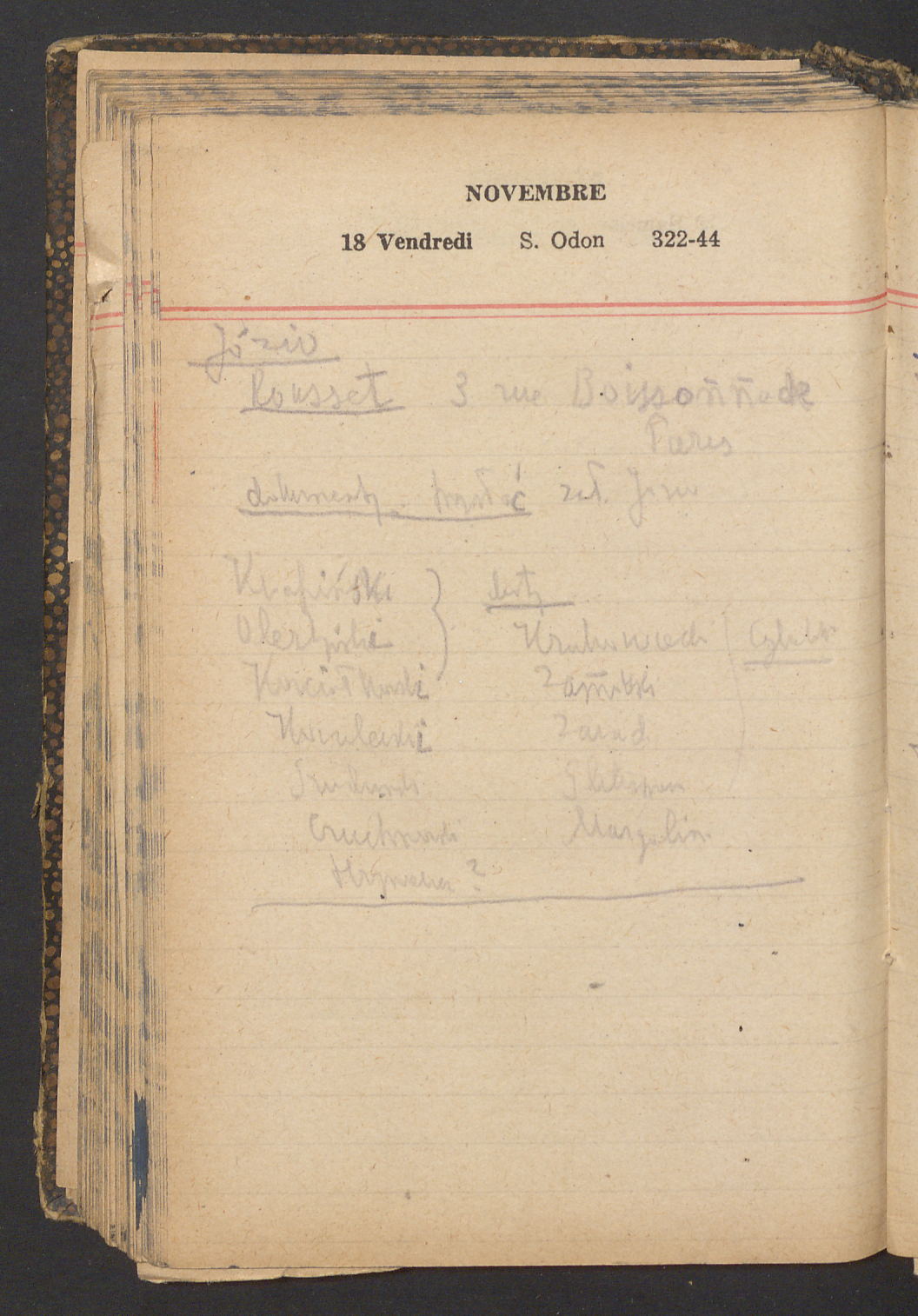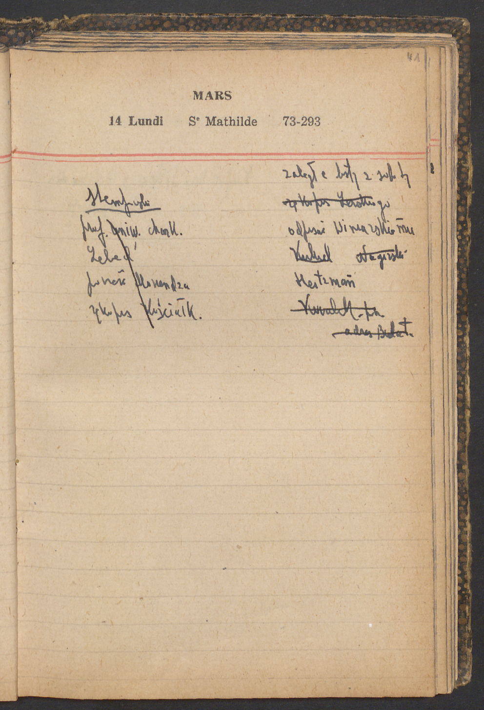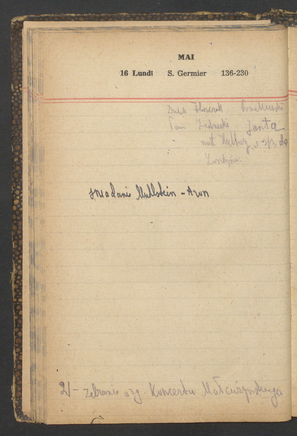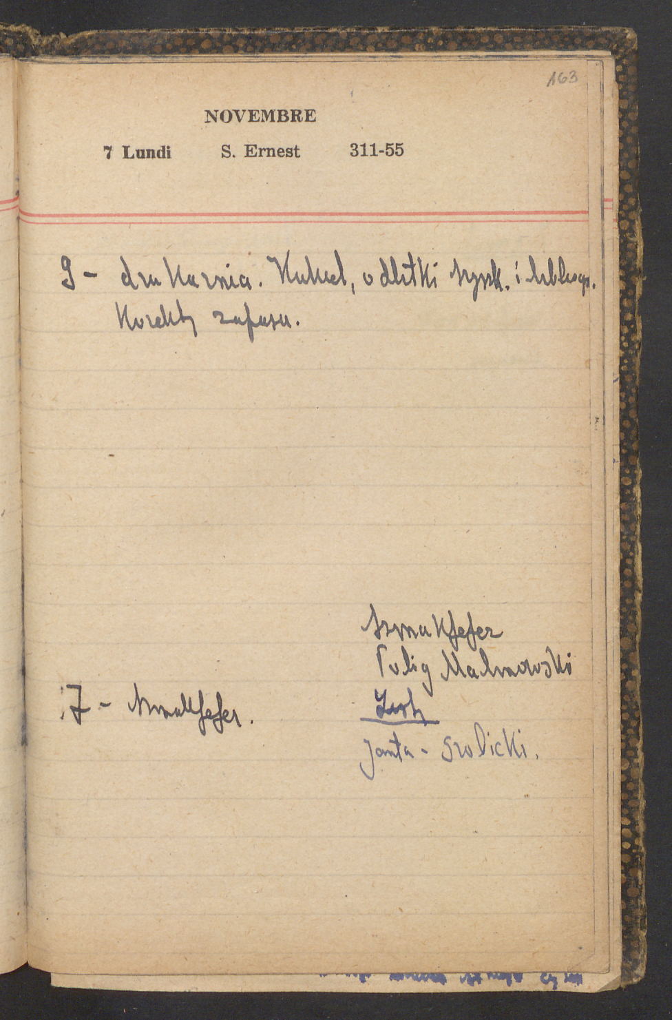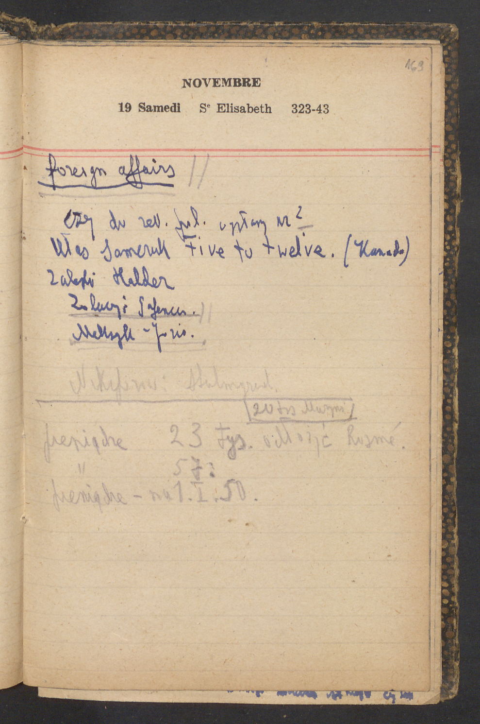 15 – Kawałkowski proponuję założ. org. franc. pol. pochodzenia oraz założenie za pien. fr. pisma codz. 2 języcznego. Mamy szczegółowo przedyskutować przed jego wyjazdem 4 IV do Londynu.