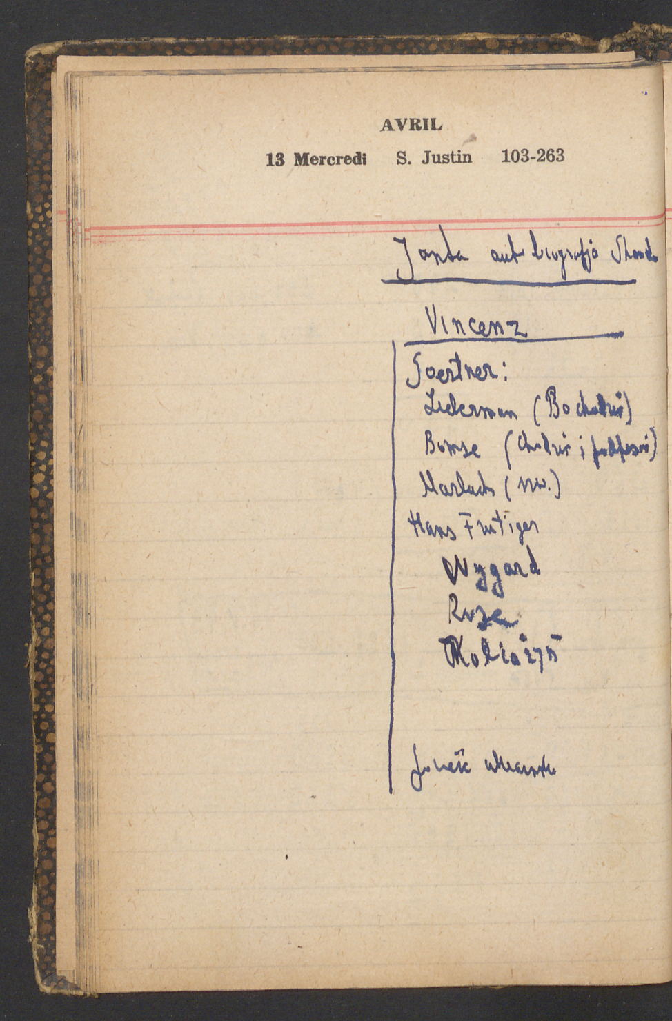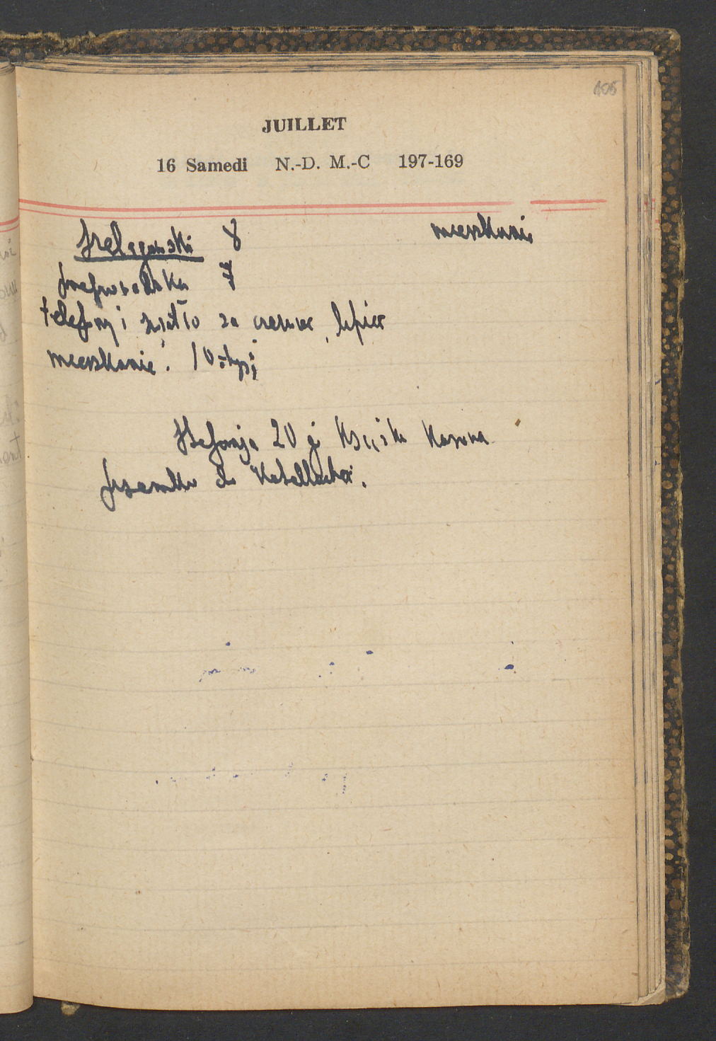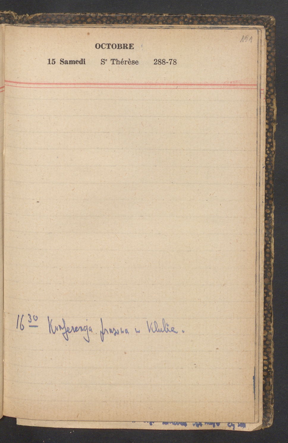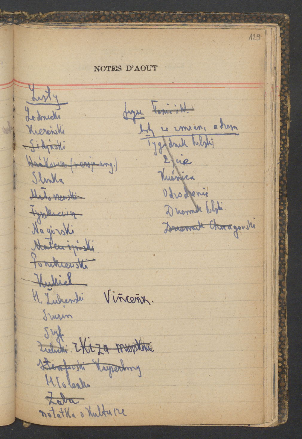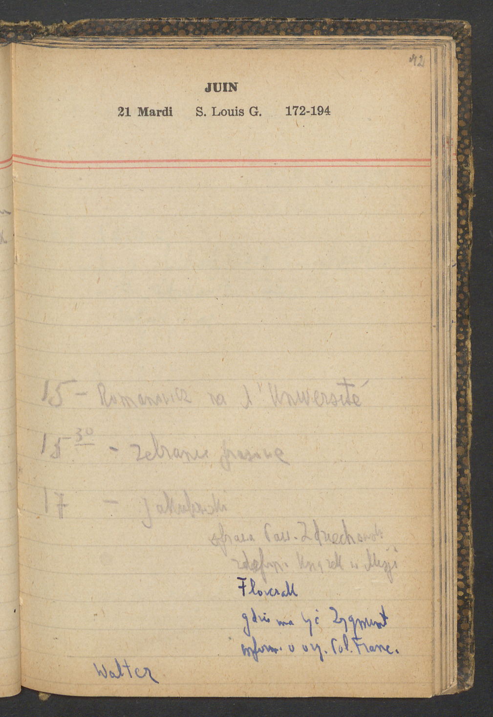 15 – Kawałkowski proponuję założ. org. franc. pol. pochodzenia oraz założenie za pien. fr. pisma codz. 2 języcznego. Mamy szczegółowo przedyskutować przed jego wyjazdem 4 IV do Londynu.