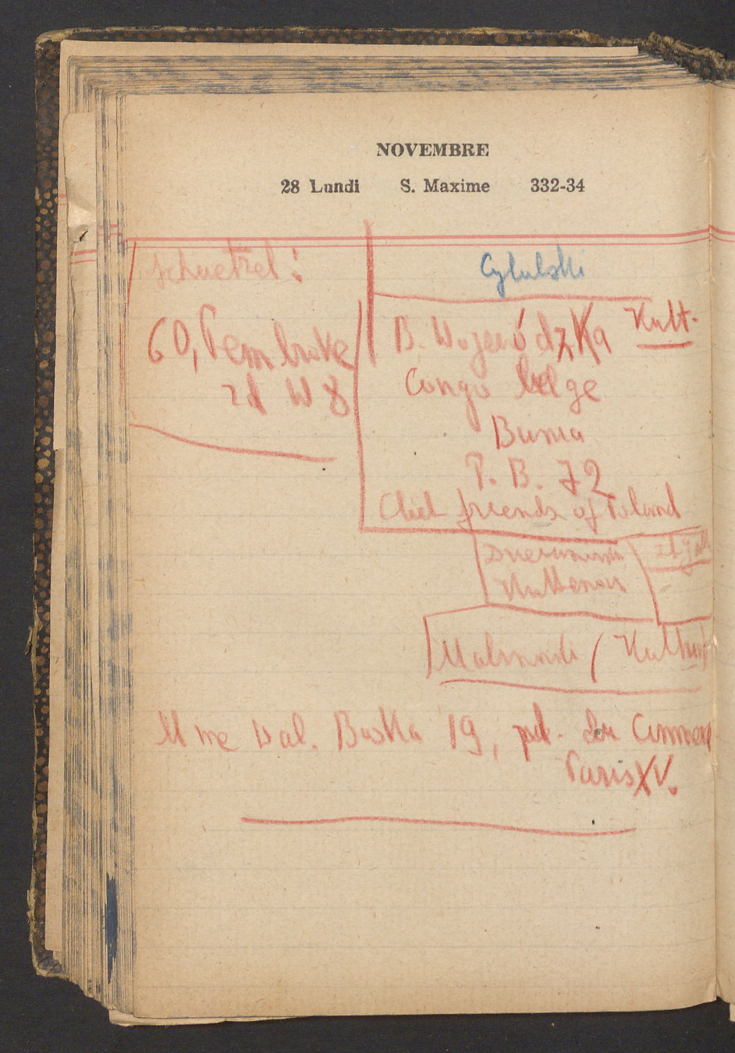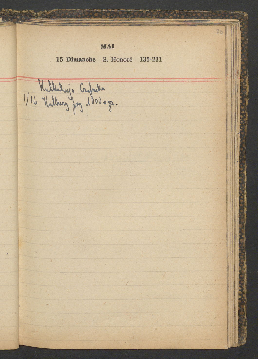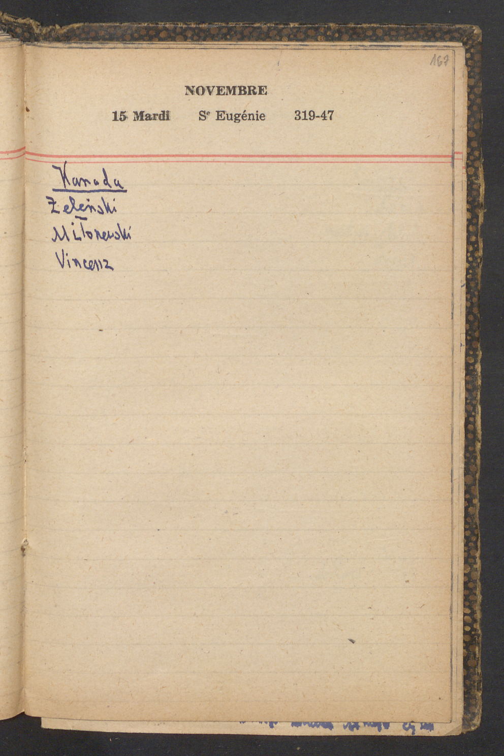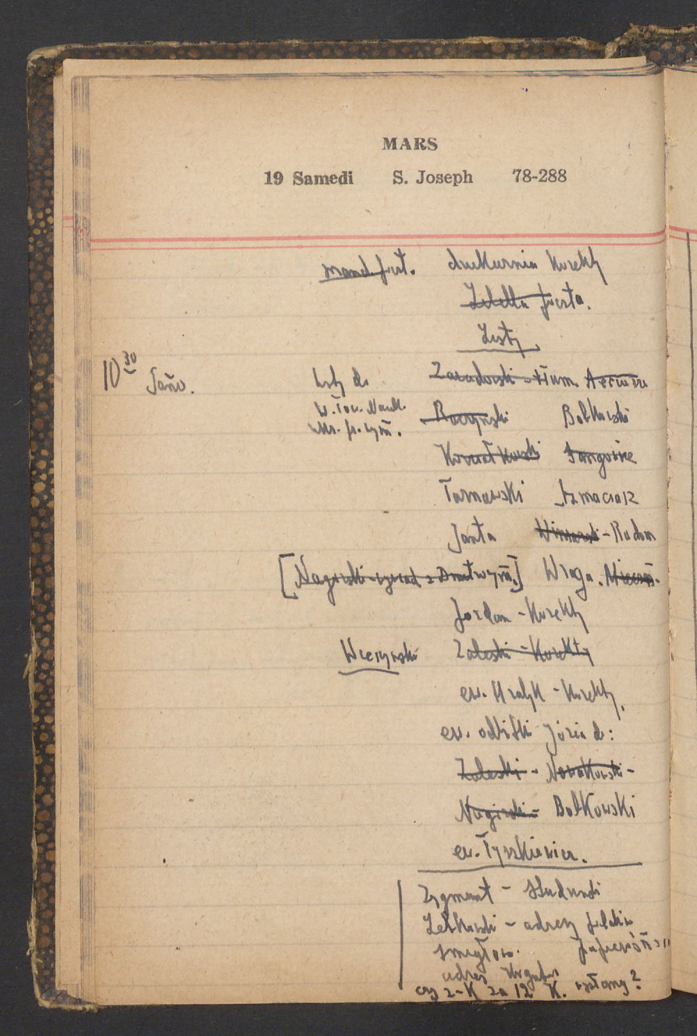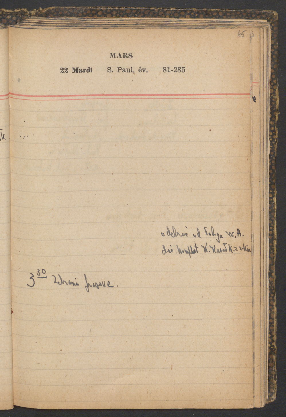 15 – Kawałkowski proponuję założ. org. franc. pol. pochodzenia oraz założenie za pien. fr. pisma codz. 2 języcznego. Mamy szczegółowo przedyskutować przed jego wyjazdem 4 IV do Londynu.