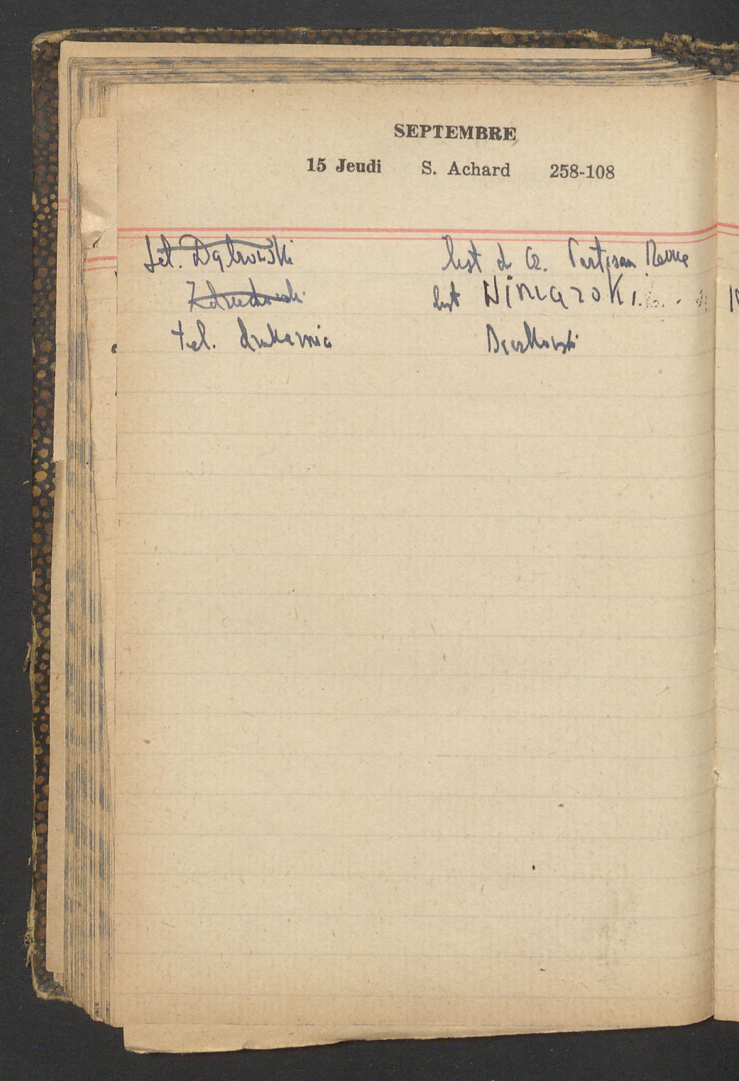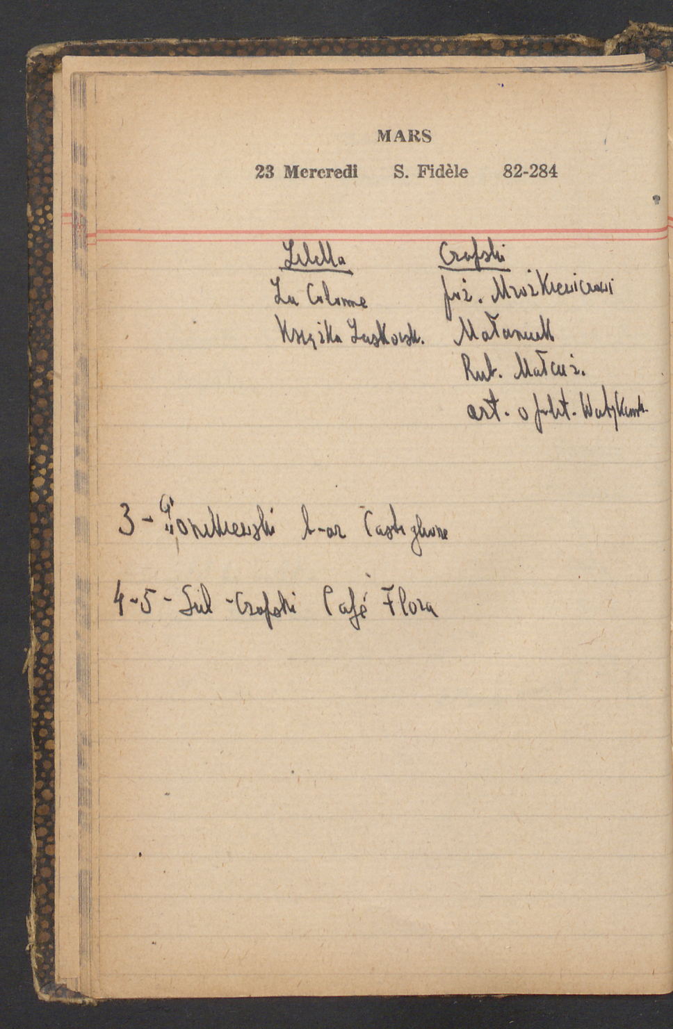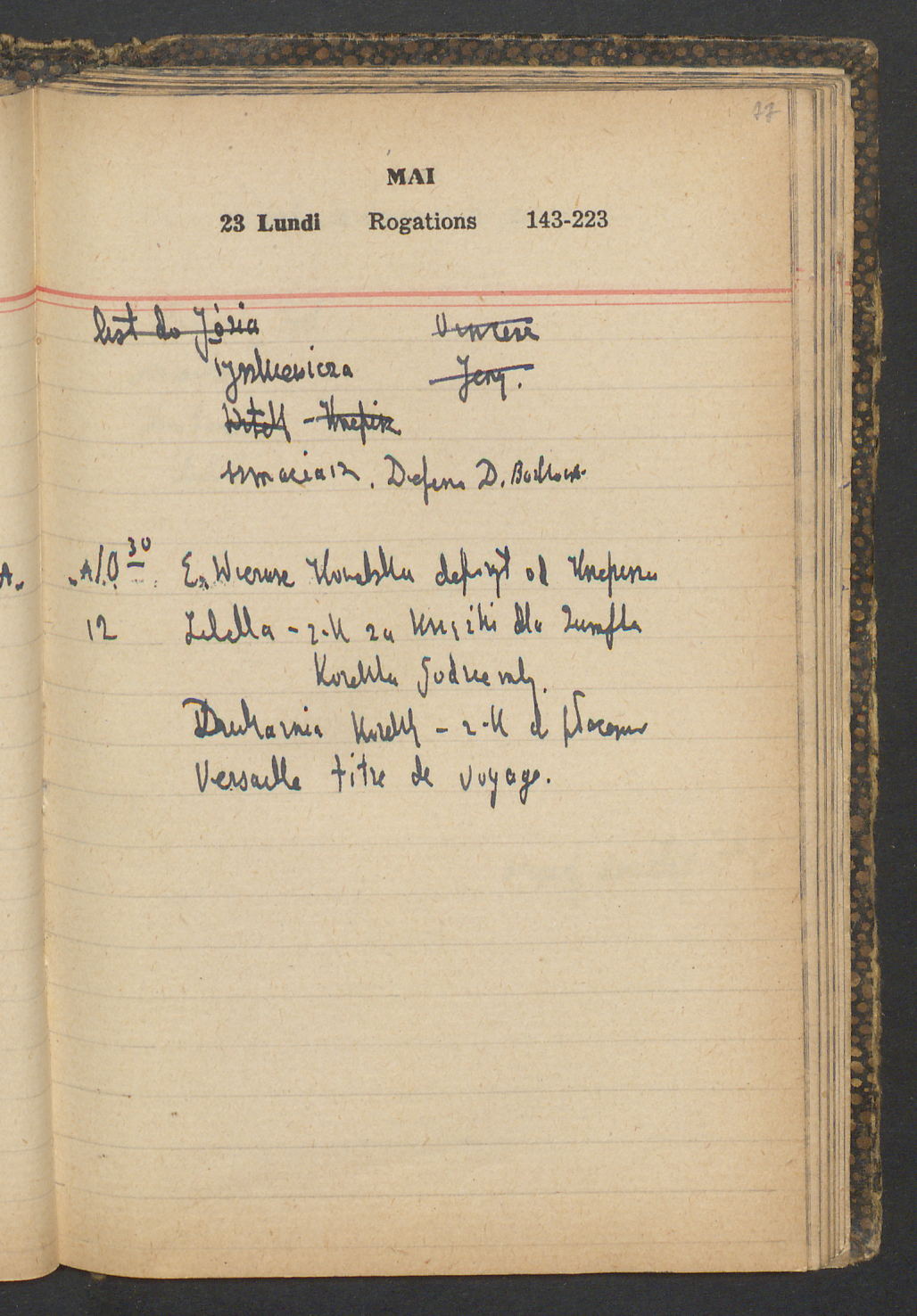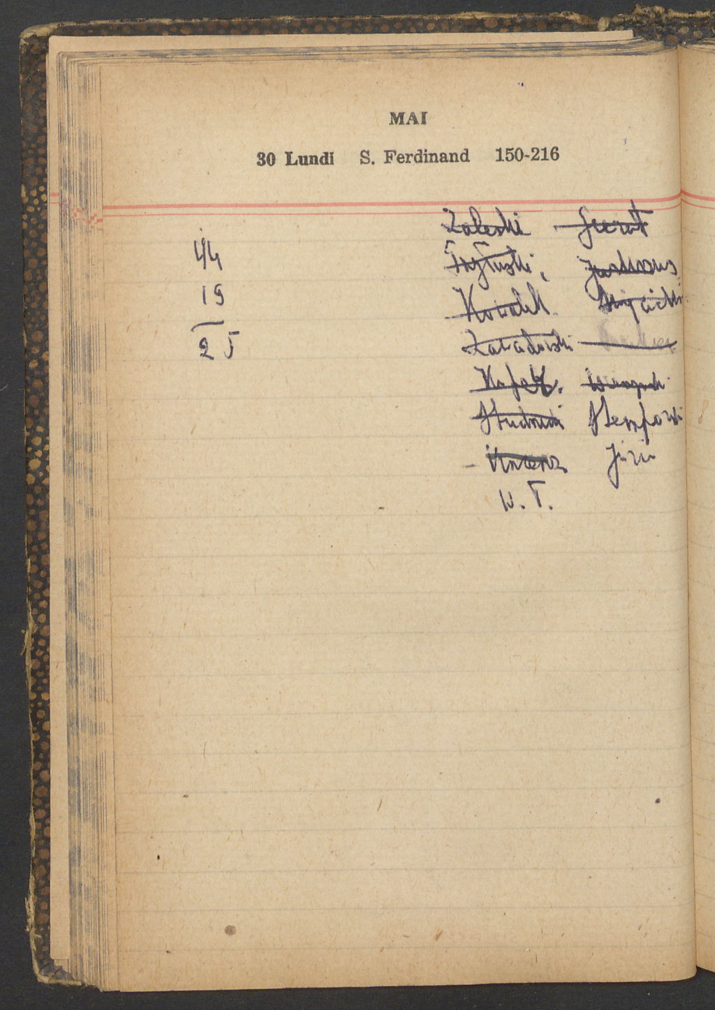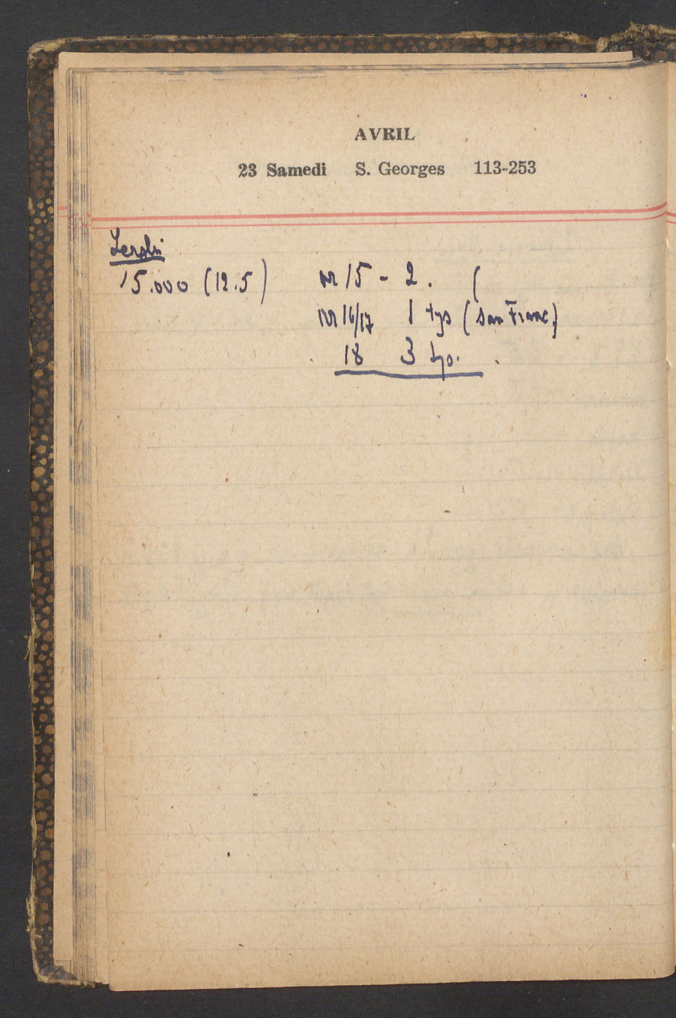 15 – Kawałkowski proponuję założ. org. franc. pol. pochodzenia oraz założenie za pien. fr. pisma codz. 2 języcznego. Mamy szczegółowo przedyskutować przed jego wyjazdem 4 IV do Londynu.