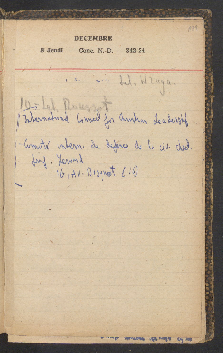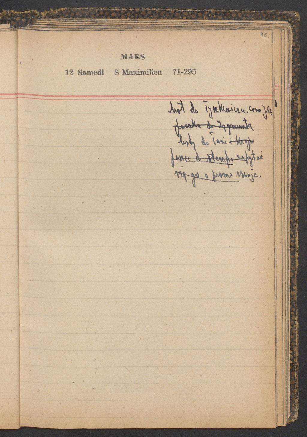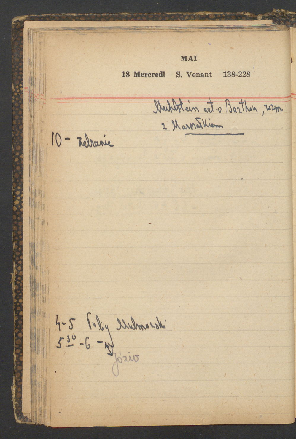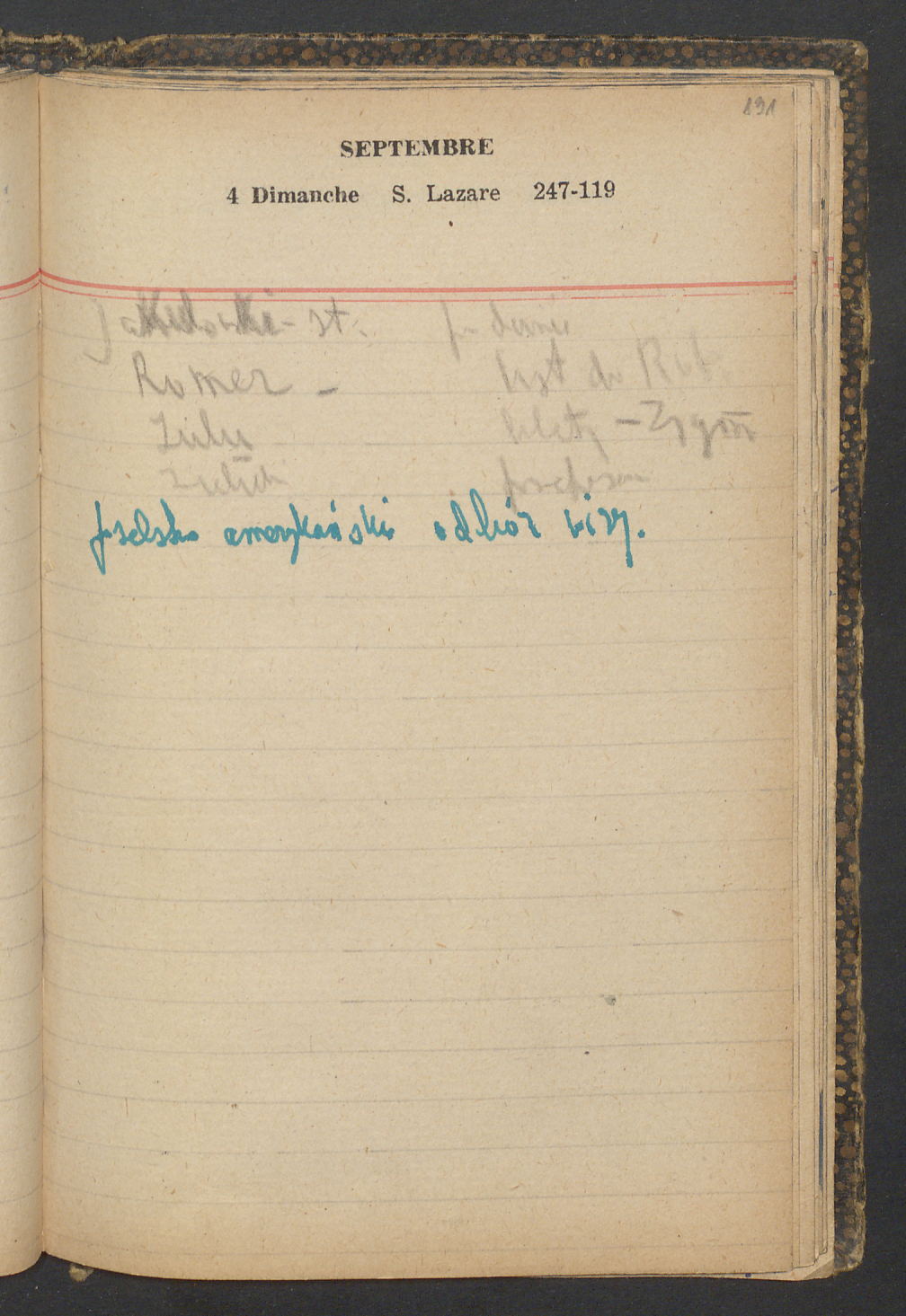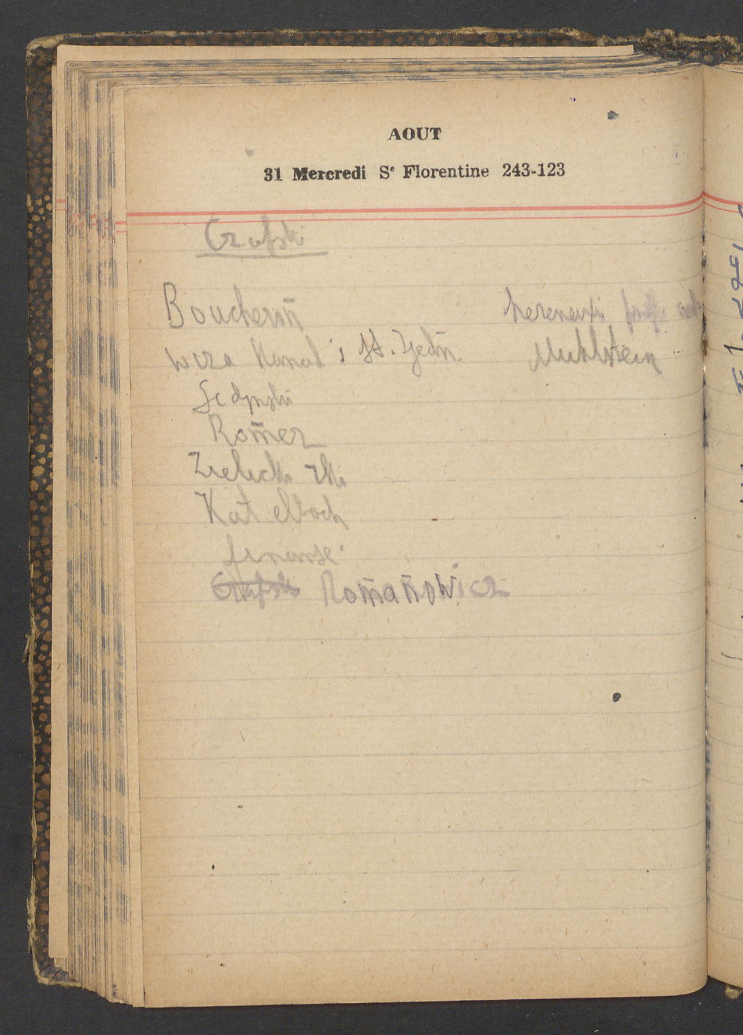 15 – Kawałkowski proponuję założ. org. franc. pol. pochodzenia oraz założenie za pien. fr. pisma codz. 2 języcznego. Mamy szczegółowo przedyskutować przed jego wyjazdem 4 IV do Londynu.