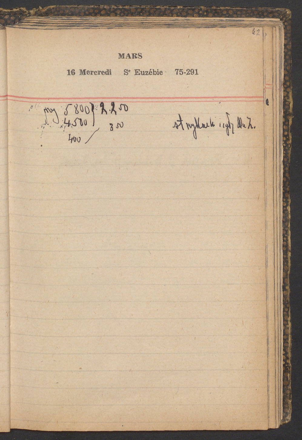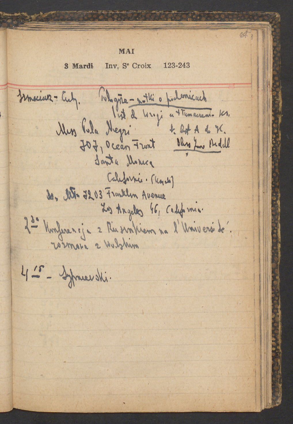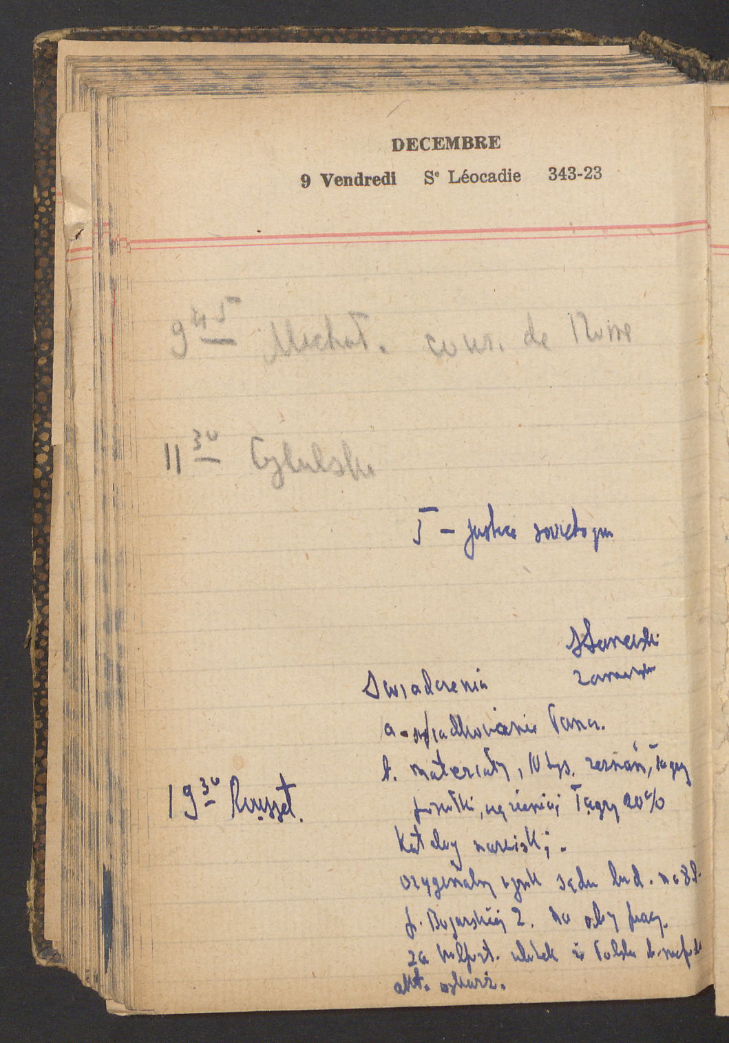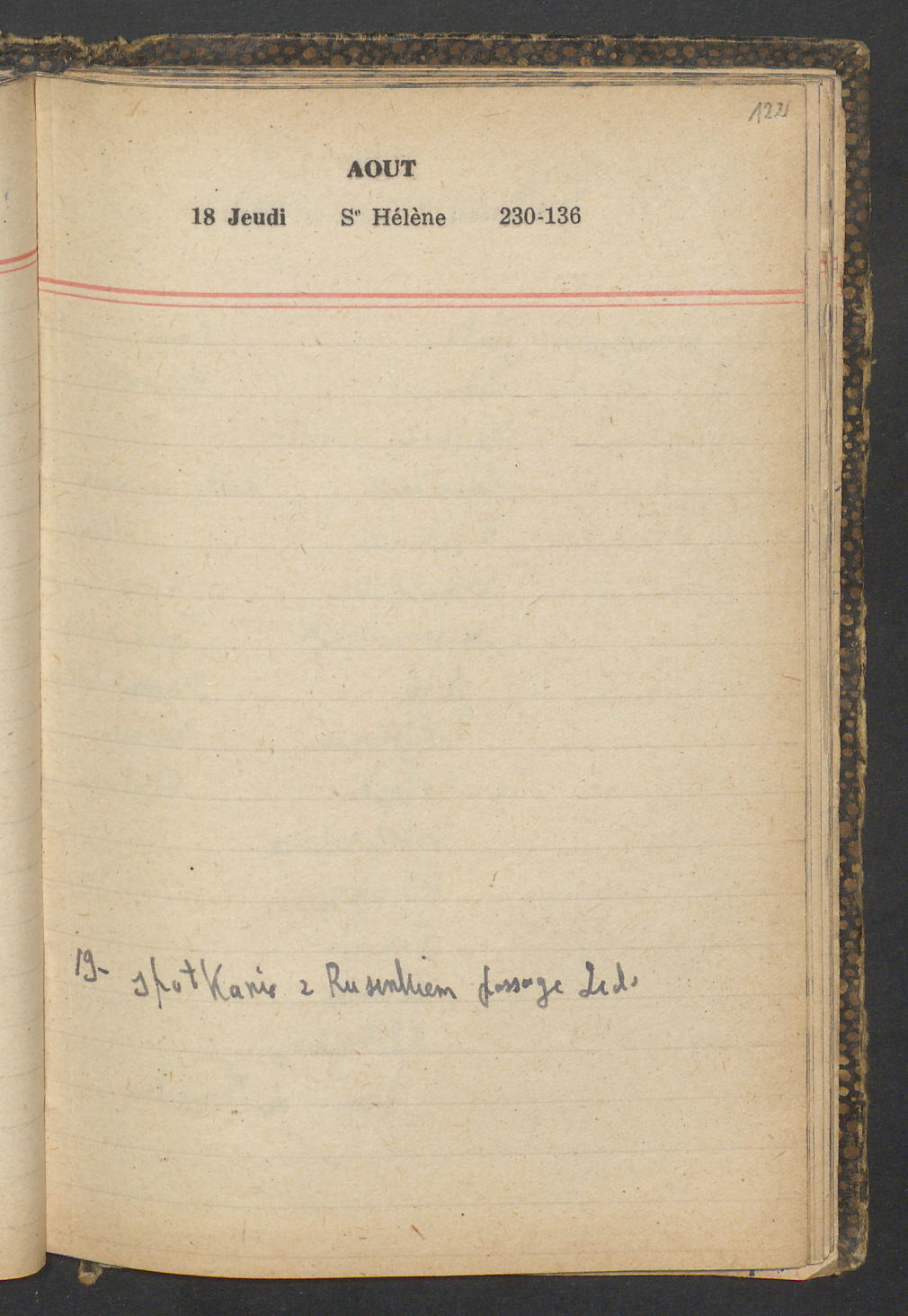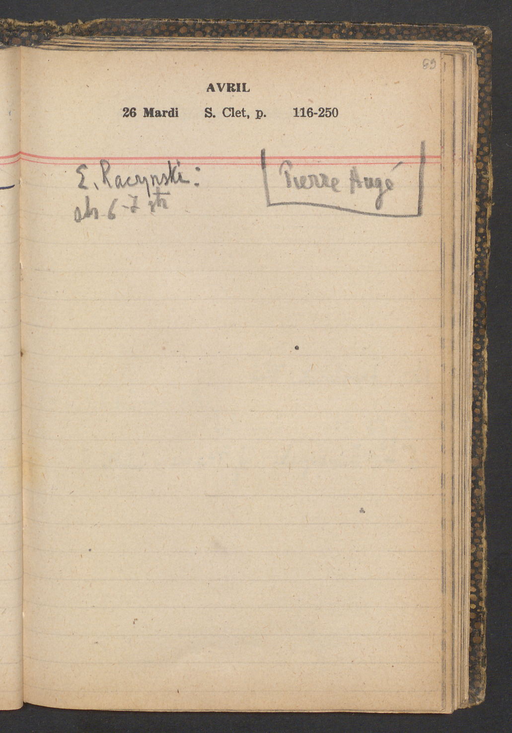 15 – Kawałkowski proponuję założ. org. franc. pol. pochodzenia oraz założenie za pien. fr. pisma codz. 2 języcznego. Mamy szczegółowo przedyskutować przed jego wyjazdem 4 IV do Londynu.