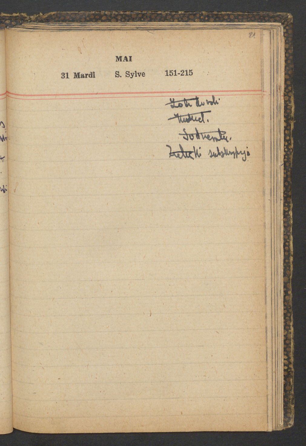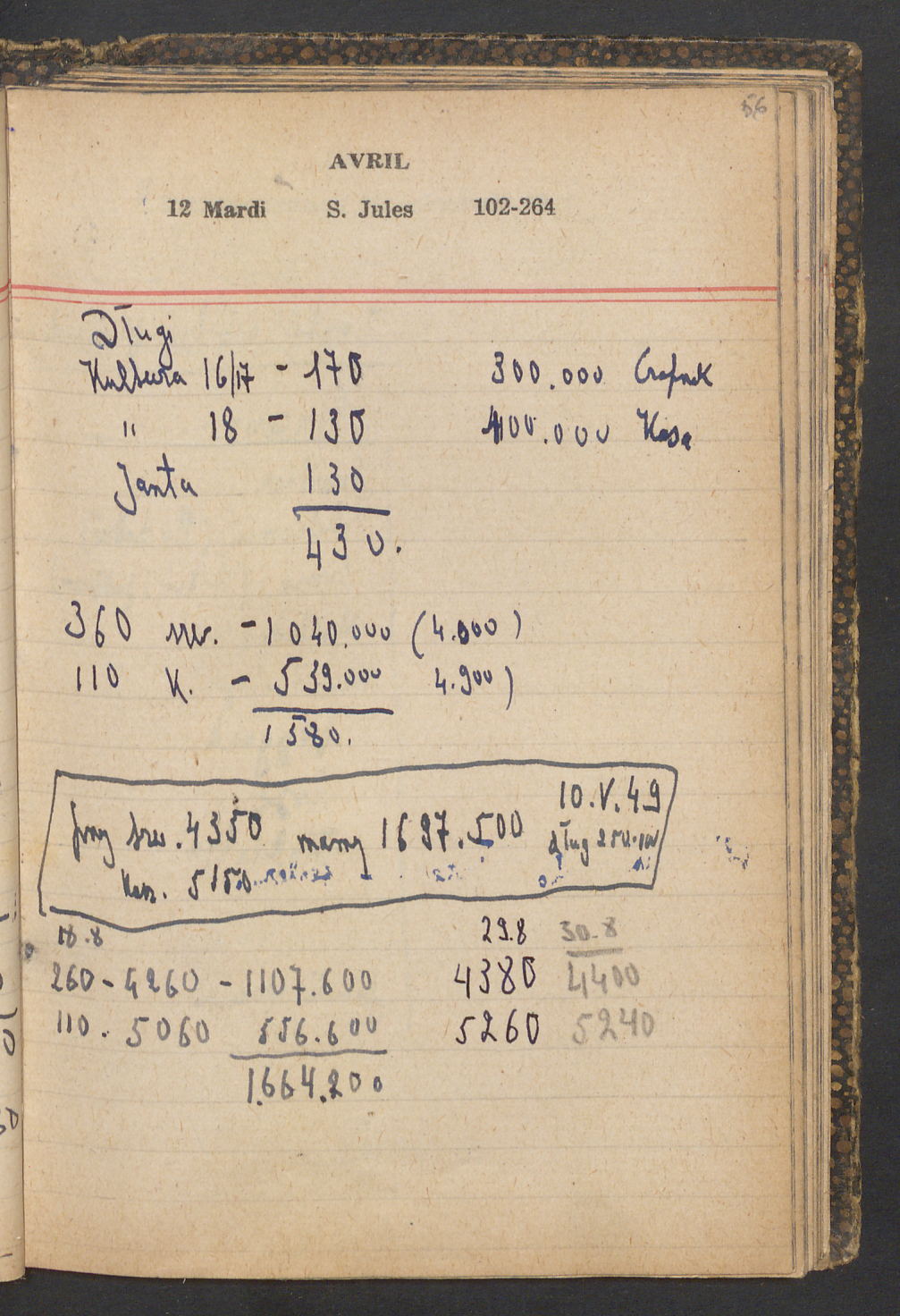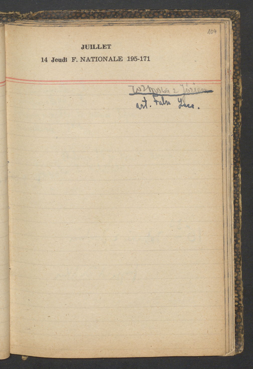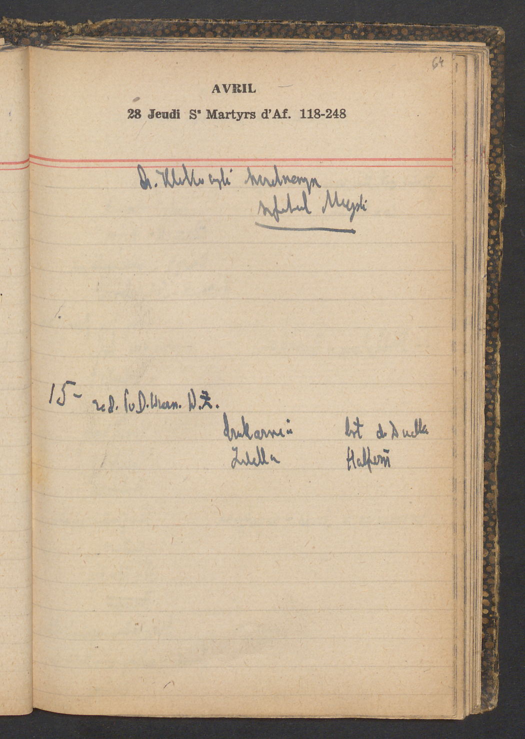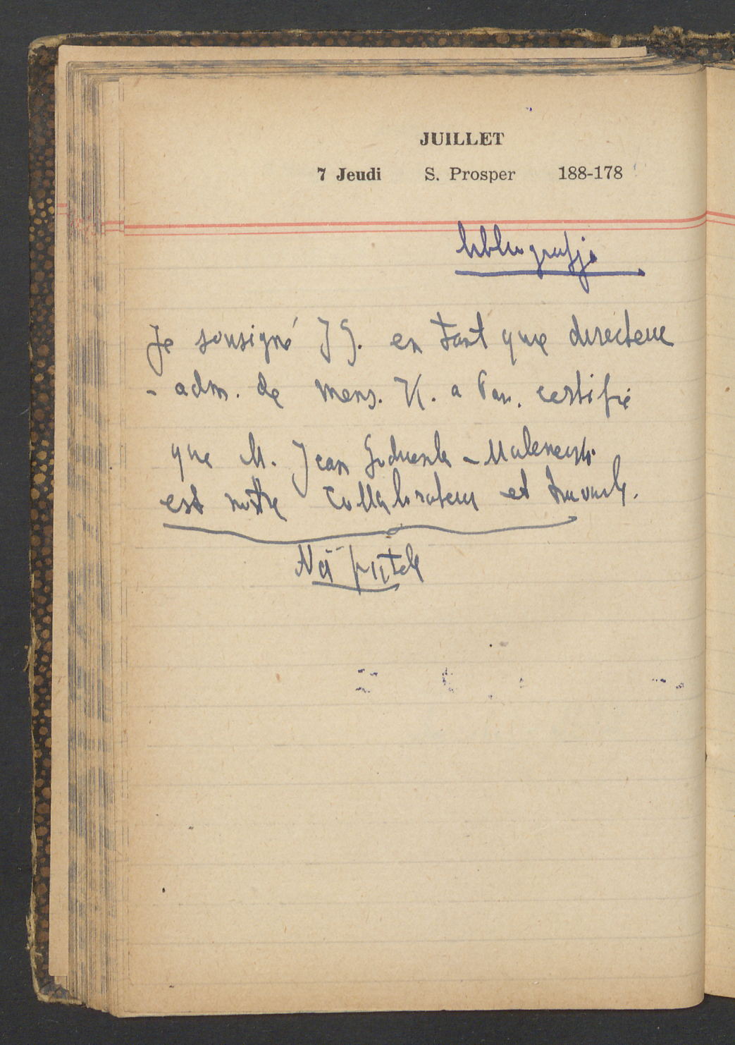 15 – Kawałkowski proponuję założ. org. franc. pol. pochodzenia oraz założenie za pien. fr. pisma codz. 2 języcznego. Mamy szczegółowo przedyskutować przed jego wyjazdem 4 IV do Londynu.