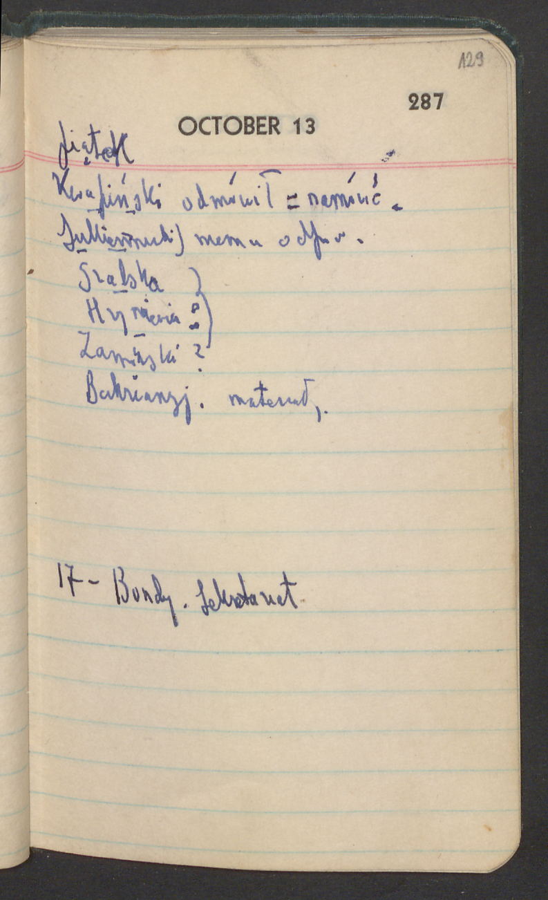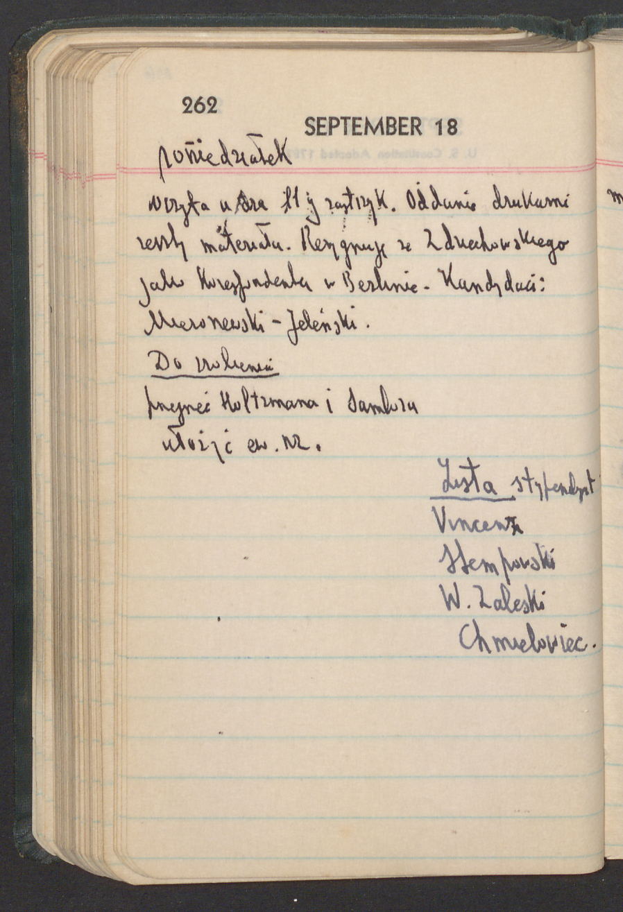 wizyta u dra 11y zastrzyk. Oddanie drukarni reszty materiału. Rezygnuję ze Zdziechowskiego jako korespondenta w Berlinie. Kandydaci: Mieroszewski – Jeleński.