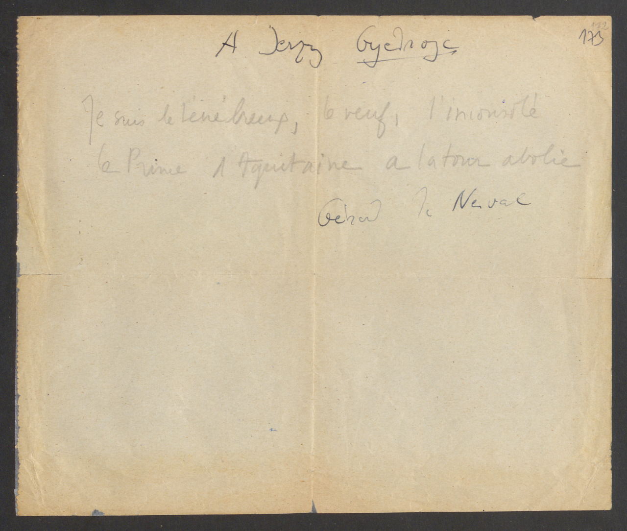 [Fragment sonetu francuskiego poety romantycznego Gérarda de Nervala, „El Desdichado” (hiszp. Nieszczęsny), opublikowanego w 1854 roku.]