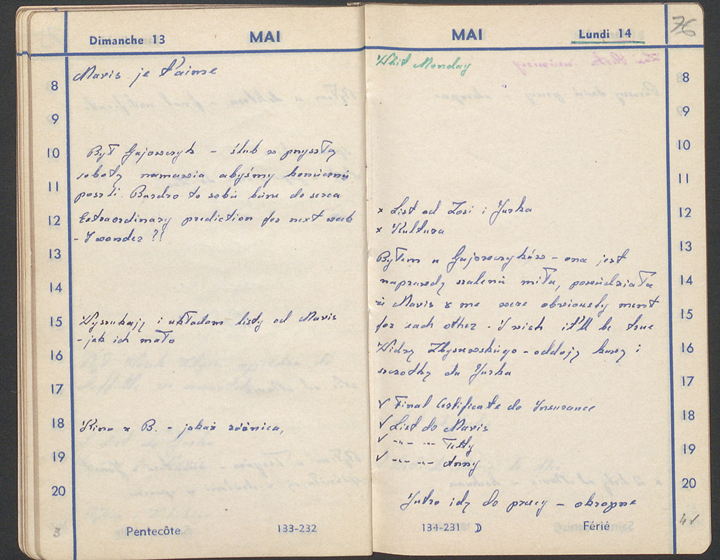 Byłem u Gajowczyków – ona jest naprawdę szalenie miła, powiedziała że Mavis & me were obviously must for each other. I wish it’ll be true. [tłum. „Mavis i ja jesteśmy sobie przeznaczeni. Mam nadzieję, że to się spełni”]