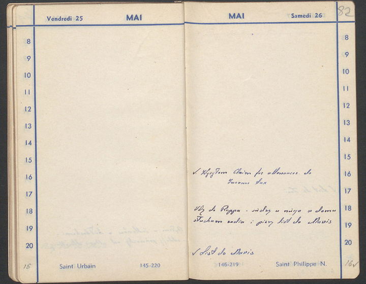 26 maja Wysyłam Claim for allowances do Income Tax Idę do Ruppa – siedzę u niego w domu słucham radia i pisze list do Mavis List do Mavis Następna