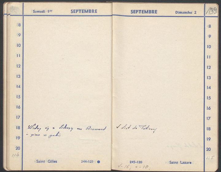 1 września Widzę się z Sikorą na Riczmond [Richmond] - piwo w pubie 2 września List do Tatiany v-16; x-10 Następna