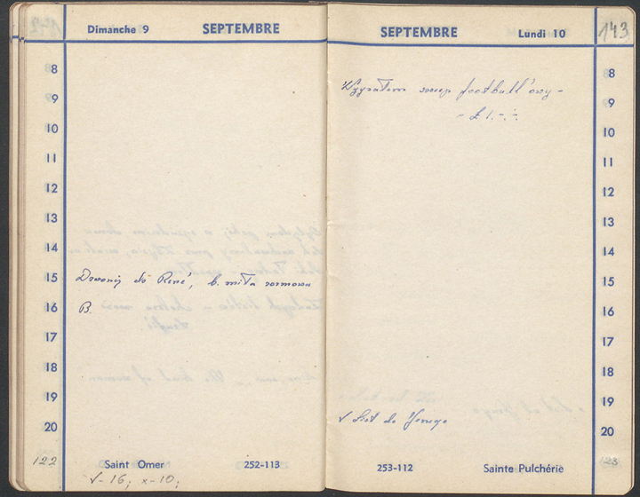 9 września Dzwonię do René, b. miła rozmowa B. v-16; x-10 10 września Wygrałem sweep football’owy – Ł 1.-.-. List do Jerzego Następna