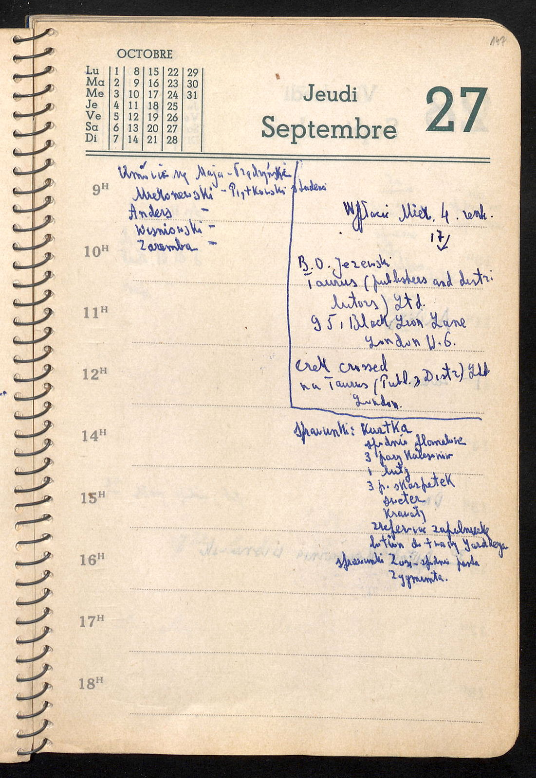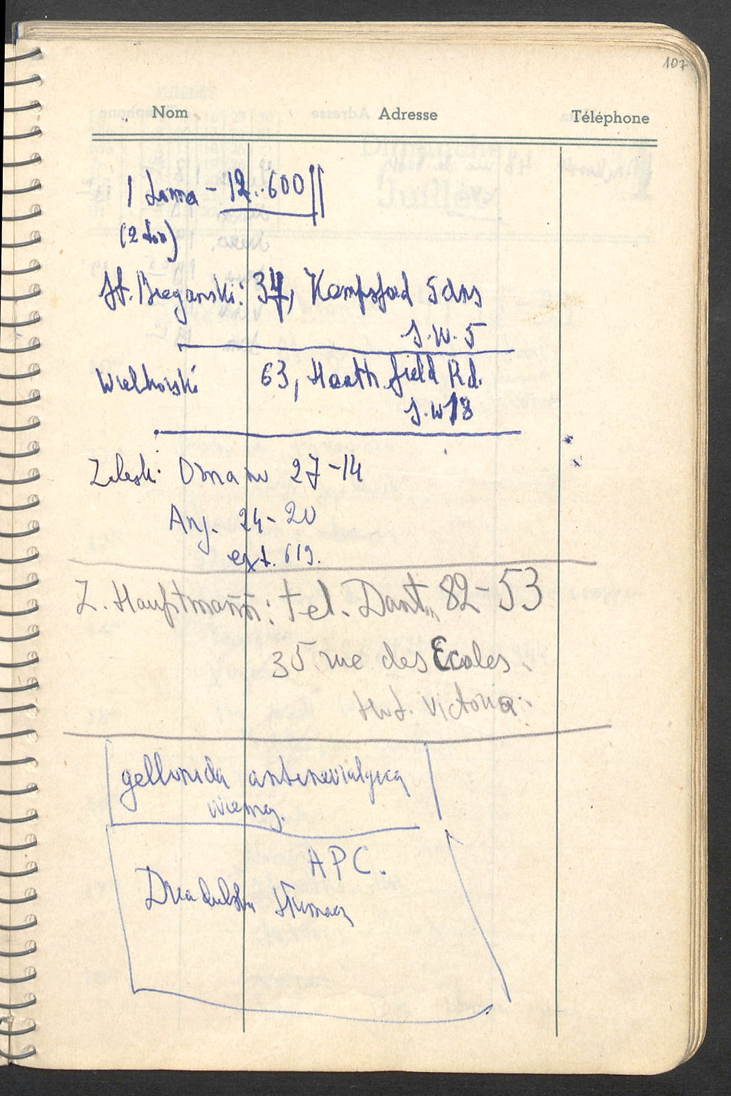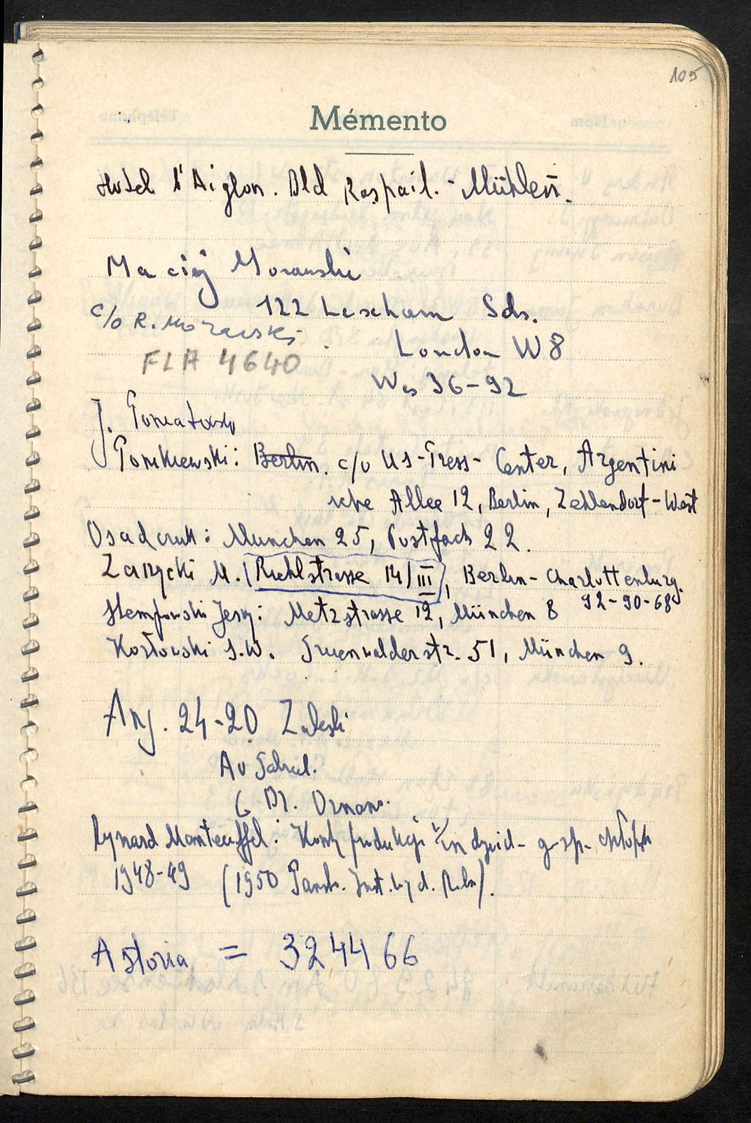 Prądzyńska, 88 Eton Hall Pri 73-50, Eton College Rd., N.W.3, (?) May 45-93